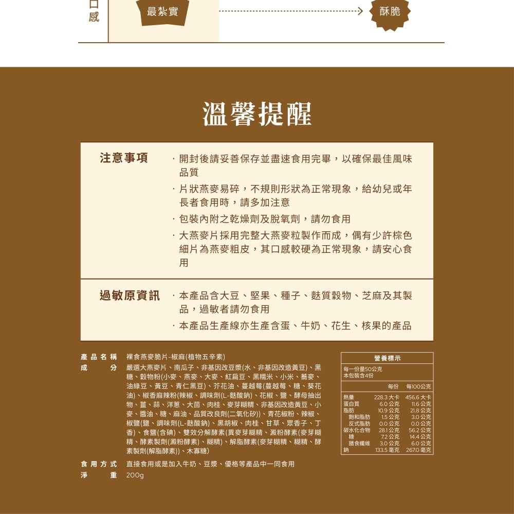 椒麻 裸食燕麥脆片 (全素)
