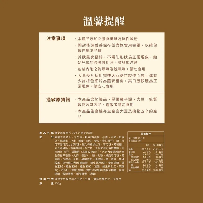 巧克力麥芽 纖女燕麥脆片 (奶素)