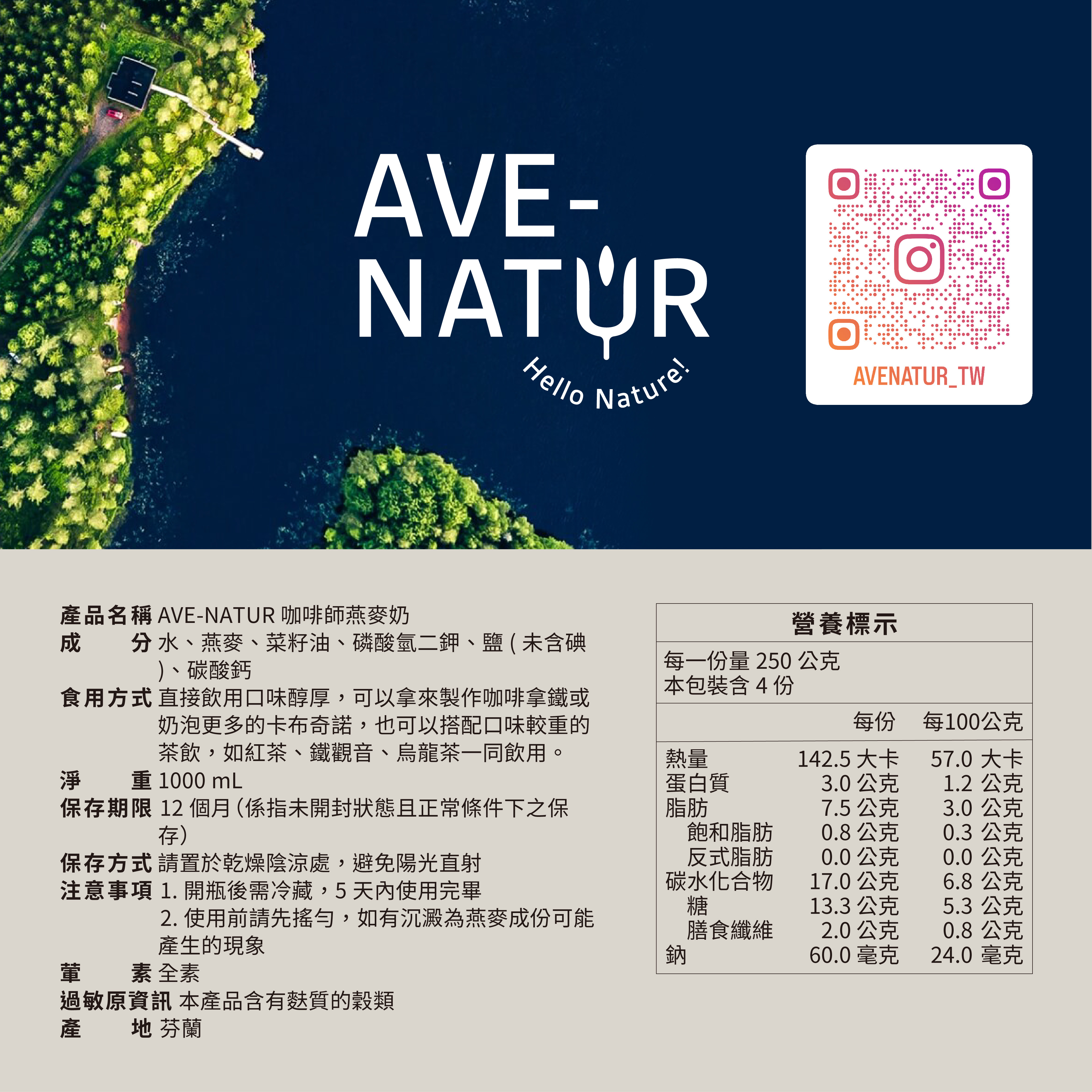 咖啡師 燕麥奶-AVE-NATUR OAT DRINK(Barista)