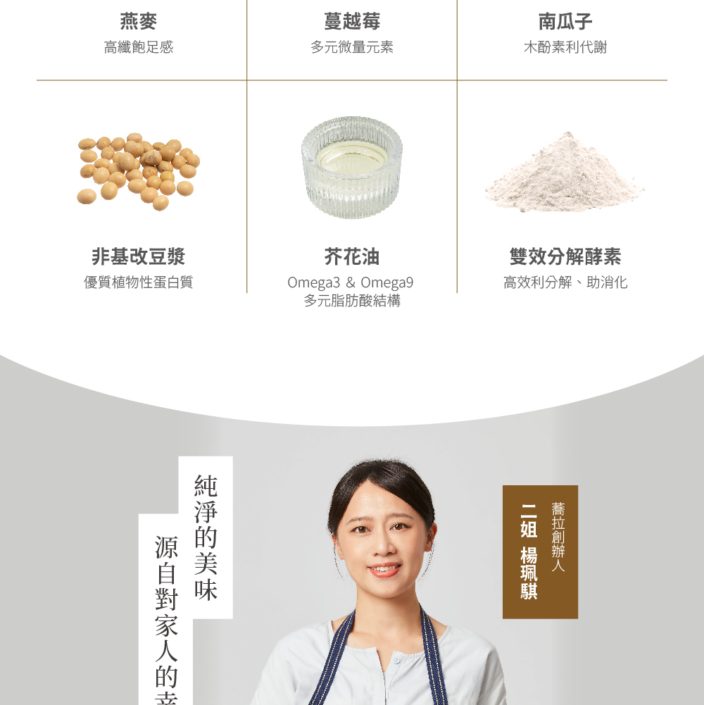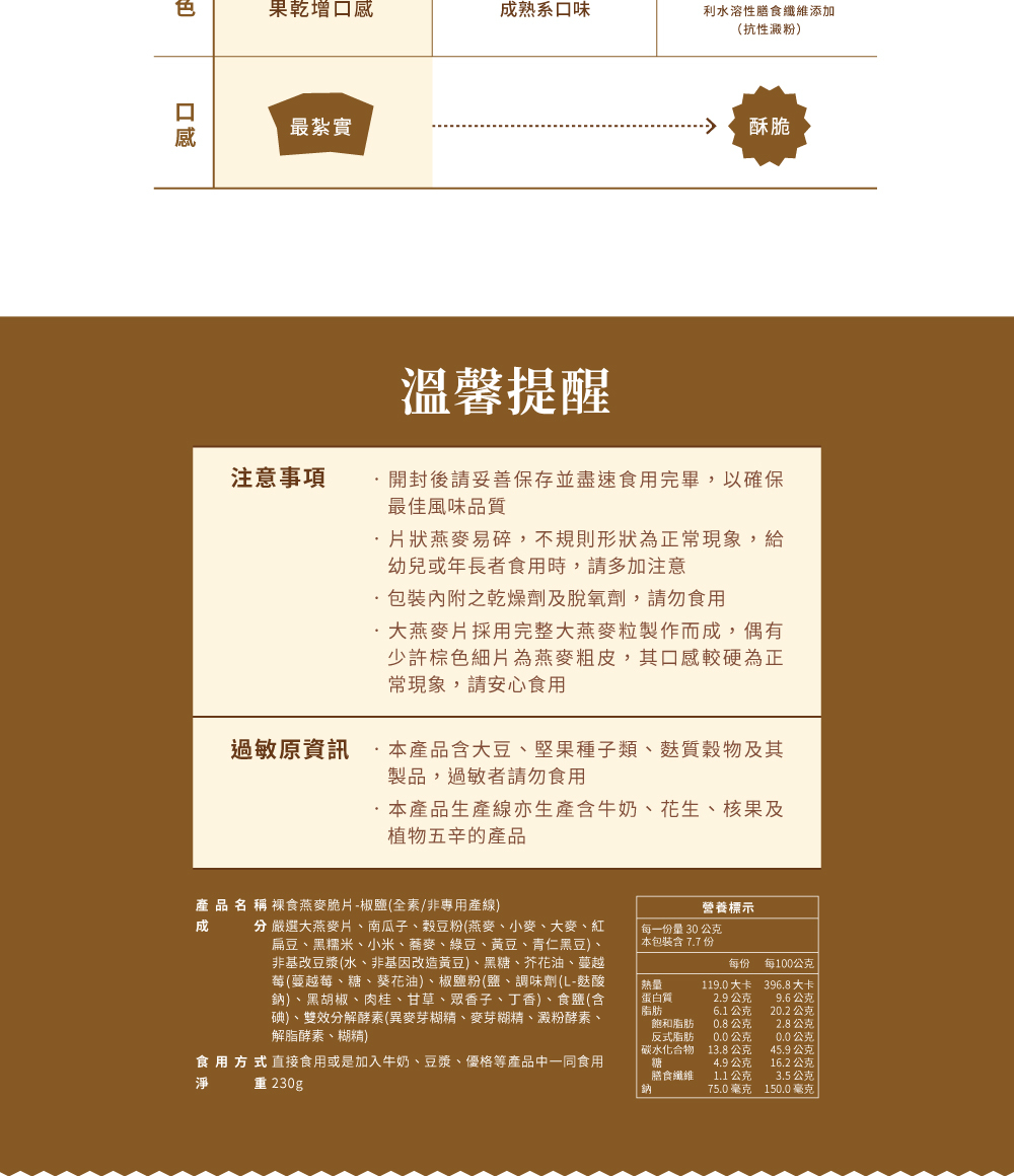 • 燕麥含有豆漿、堅果、麩質穀類及其製品,過敏者請勿食用