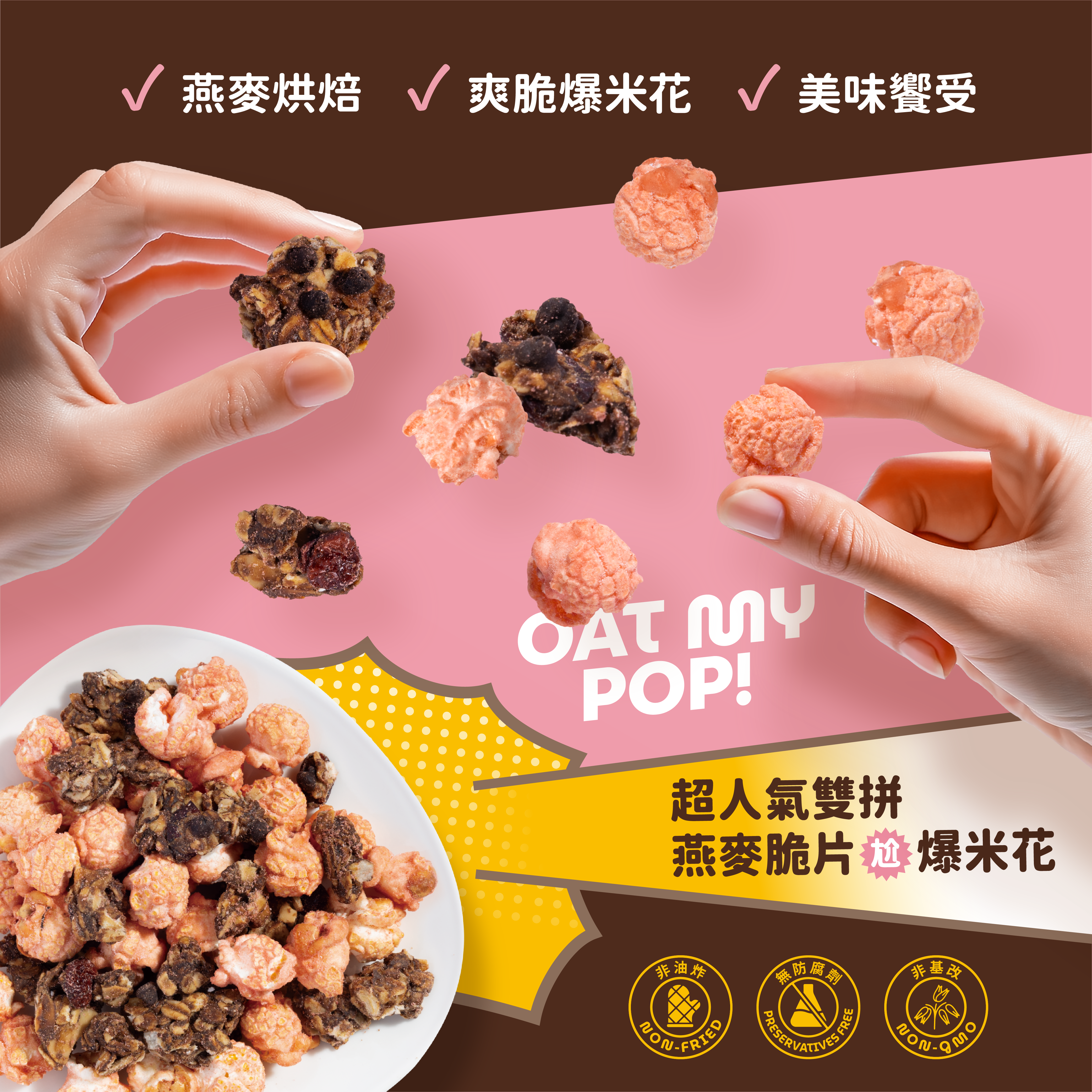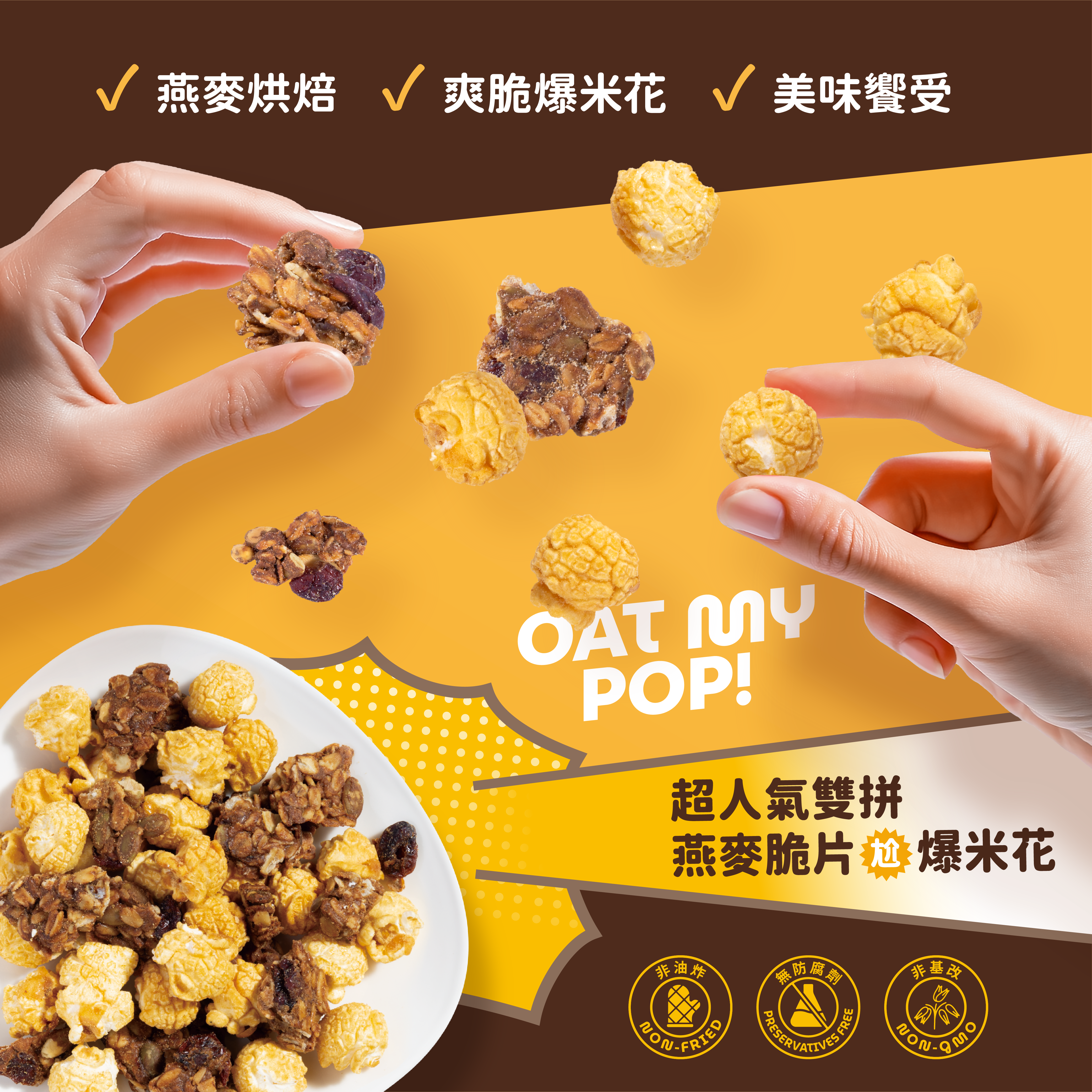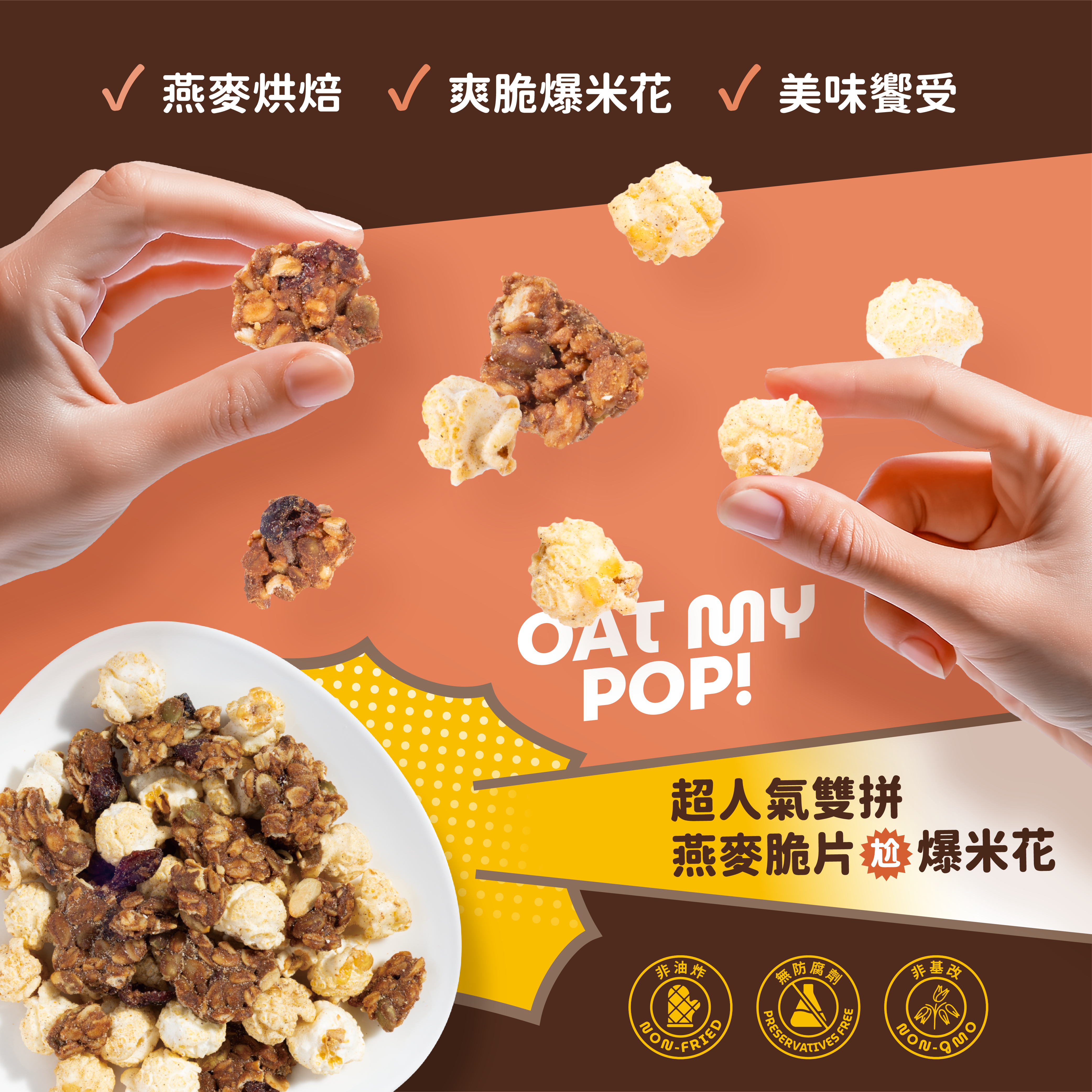 🌟燕麥脆片紮實口感 x 爆米花的輕盈,雙重口感一次滿足